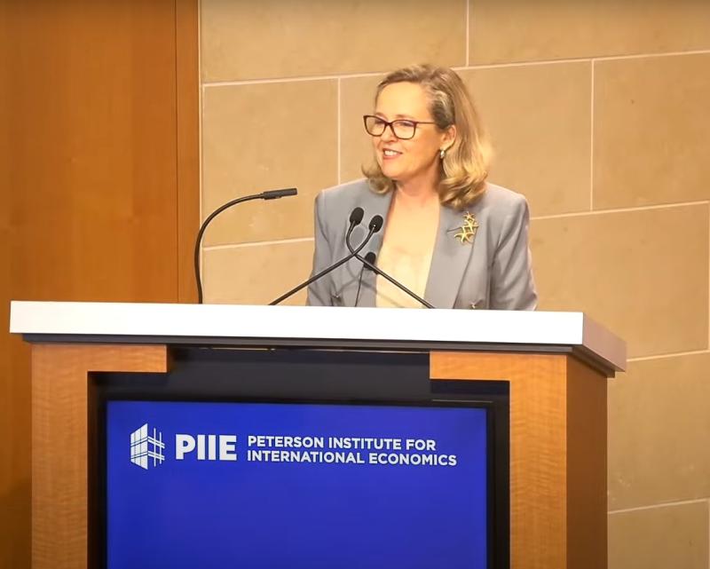 Präsidentin Nadia Calviño im Gespräch mit Cecilia Malmström vom Peterson Institute for International Economics: Europas Rolle als Stabilitätsanker in einer sich verändernden Welt und Partnerschaften als beste Garantie für Frieden und Wohlstand