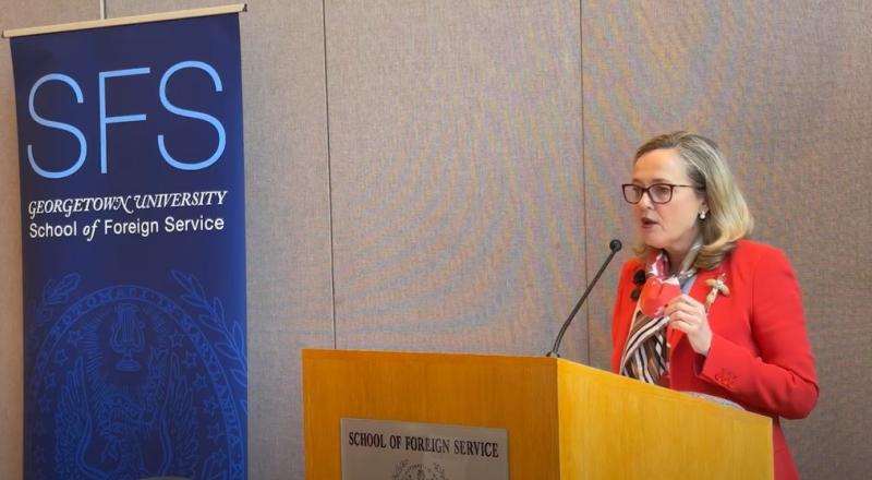 Rede von Präsidentin Nadia Calviño vor Studierenden der Georgetown University über die transatlantischen Beziehungen im aktuellen geopolitischen Kontext