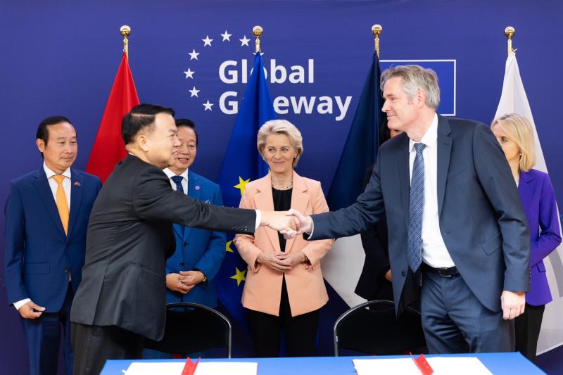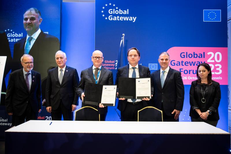 Als wichtiger Partner von Global Gateway war die EIB mit einer Delegation unter der Leitung von Präsident Werner Hoyer beim Global Gateway Forum vertreten. Dort bekräftigten wir mit der Unterzeichnung neuer Vereinbarungen für Projekte in aller Welt, dass Global Gateway weiter auf uns zählen kann. Am ersten Tag der Veranstaltung nahm Präsident Hoyer an der Podiumsdiskussion zum Thema „Die grüne Energiewende und grüner Wasserstoff“ teil. Dabei ging es um Fortschritte, die Global Gateway in diesen beiden Bereichen im Nahen Osten und in Nordafrika sowie in Namibia und Chile erzielt hat.