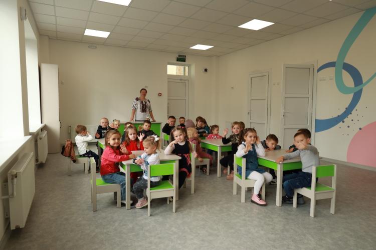 The village of Vysoke in Zhytomyr Oblast has opened its first preschool, giving local and internally displaced children access to early education close to home. The project was financed by the European Investment Bank (EIB), the bank of the European Union, through the Ukraine Recovery Programme.