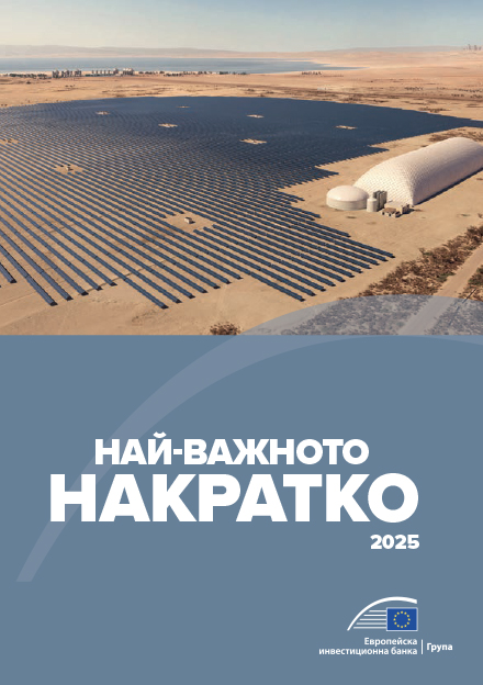 Всяка година финансираме стотици нови проекти – от мерки в областта на климата до цифровизация, от сигурност и отбрана до устойчиви жилища, от селско стопанство до чиста вода. Нашата подкрепа стимулира по-слабо развитите райони на Европа и увеличава максимално въздействието на капиталовите пазари. Групата на ЕИБ помага на Европа да се справя успешно в един непредсказуем и променящ се свят.