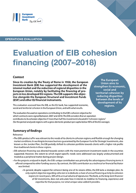 Nach den EU-Verträgen soll die EIB helfen, regionale Ungleichgewichte in der Europäischen Union abzubauen, und dazu Projekte in weniger entwickelten Regionen fördern. Vor diesem Hintergrund wurde untersucht, wie relevant und wirkungsvoll die EIB-Finanzierungen im Evaluierungszeitraum waren. Die Analyse ergab, dass sie den Bedürfnissen der Kunden entsprachen und sich positiv auf die wirtschaftliche Entwicklung dieser Regionen auswirken dürften. Gleichzeitig wurden für die Zukunft klarere strategische Vorgaben und Verbesserungen bei den Berichtssystemen empfohlen.