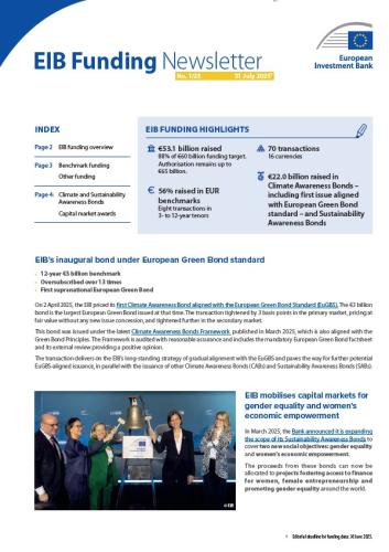 The EIB’s funding strategy relies on issuing large liquid benchmark transactions in major currencies, complemented by targeted issuances offering, diversification of currencies and markets, as well as a strong focus of sustainability funding.