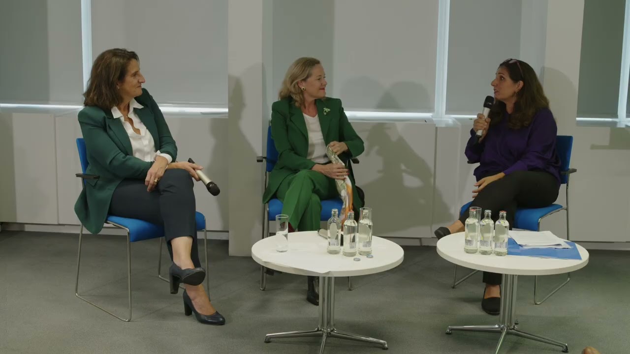 The event, titled Making the Green Transition a European Success, featured a conversation between EIB Group President Nadia Calviño, European Commission Executive Vice-President Teresa Ribera and EIB Vice-President Ambroise Fayolle, following last week’s adoption of the second phase of the EIB Group Climate Bank Roadmap and Energy Sector Orientation.