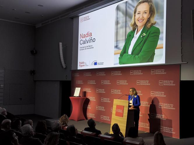 Nadia Calviño, president of the EIB Group, accepted the award for UPF-BSM Public figure of the year, by the Barcelona School of Management.