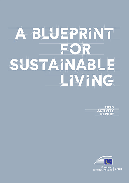 A blueprint presents drawings, dimensions and notes. This report draws vivid pictures of the beneficiaries of European Investment Bank projects in 2023. It includes data on the dimensions of our massive overall investment and the importance of our loans to each of our beneficiaries during the year. It notes the EU policies and expertise that lead us to make each of our investments.