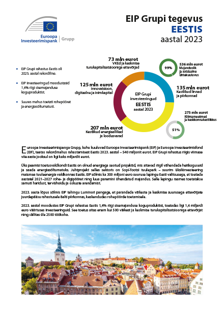 Euroopa Investeerimispanga Grupp, kuhu kuuluvad Euroopa Investeerimispank (EIP) ja Euroopa Investeerimisfond (EIF), teatas rekordmahus rahastamisest Eestis 2023. aastal – 540 miljonit eurot. EIP Grupi rahastus riigis viimase viie aasta jooksul on ligi kaks miljardit eurot.