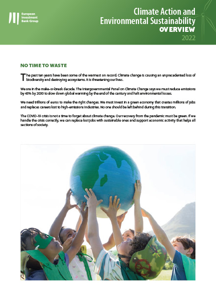 This publication gives an overview of the European Investment Bank’s contribution to climate action and environmental sustainability. It details the Bank’s activities in the sector and highlights key projects. The stories, videos and case studies, illustrate how the Bank’s financing and advice help countries, regions and cities.