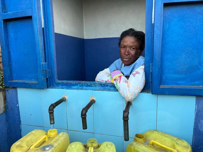 Filling canisters at a water kiosk in Antananarivo. EIB