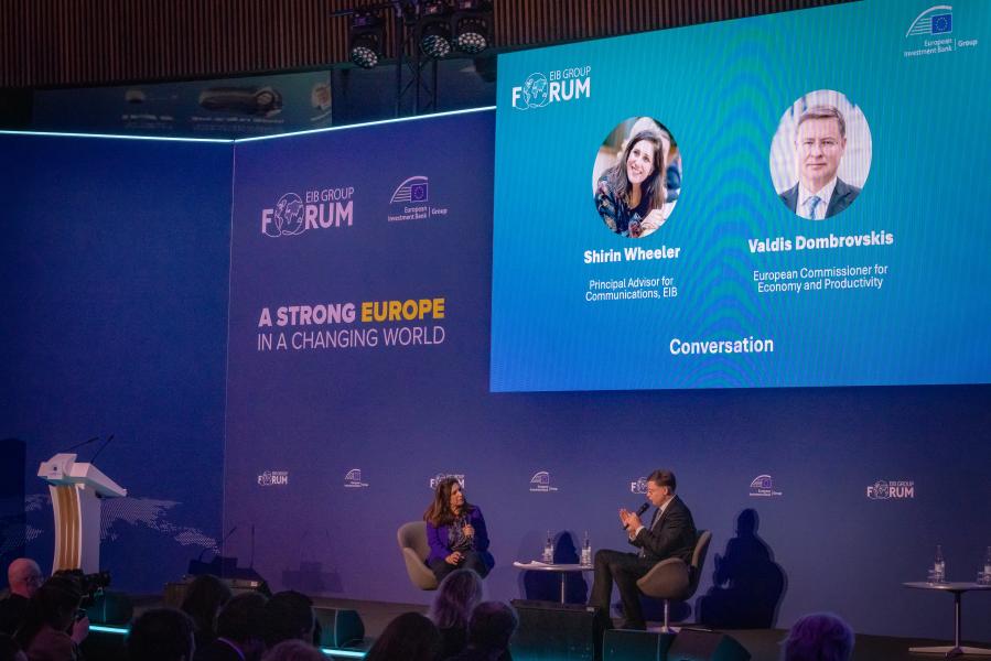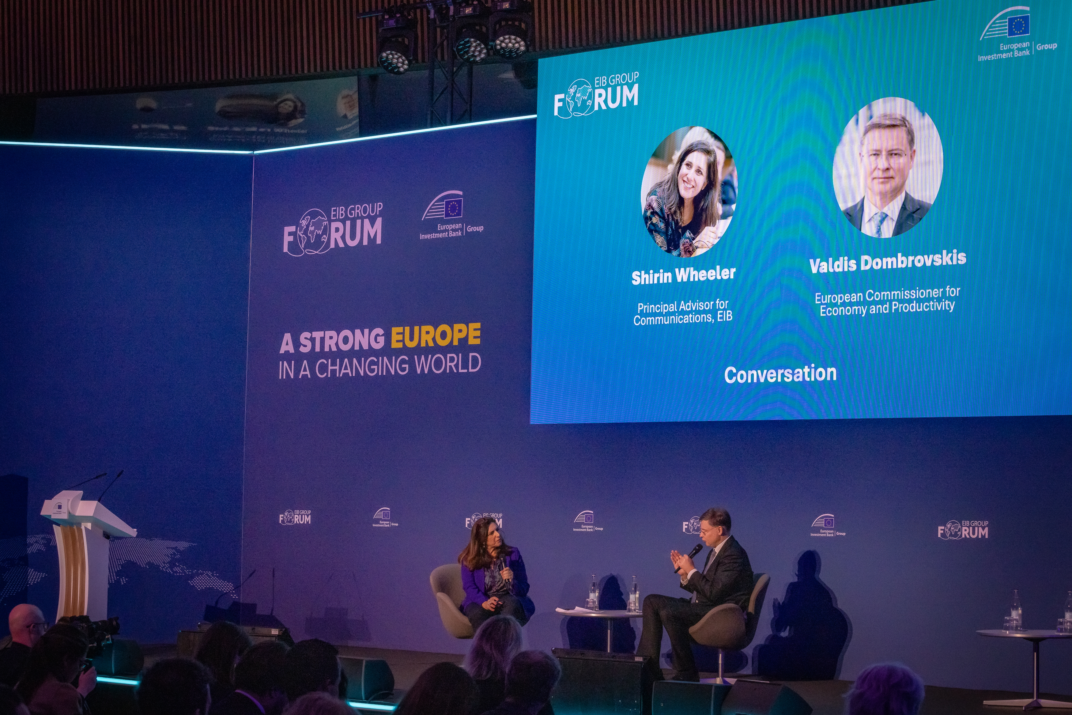 Shirin Wheeler, Principal Advisor for Communications, European Investment Bank and Valdis Dombrovskis, European Commissioner for Economy and Productivity, European Commission
