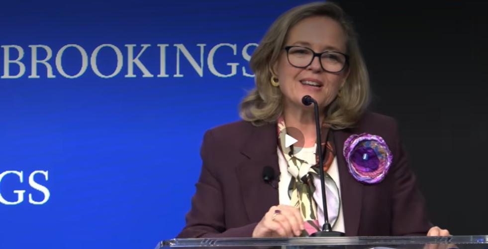 EIB Group President Nadia Calviño speaks at Brookings Institution, on "Investing in a shared future" in Washington DC, during the 2026 World Bank Group-IMF Spring Meetings.