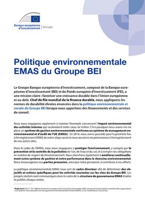 La Politique environnementale EMAS est le cadre d’action et de fixation d’objectifs environnementaux stratégiques en lien avec les activités internes du Groupe BEI.